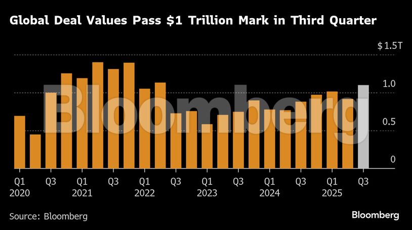 Σύμφωνα με στοιχεία του Bloomberg, η αξία των παγκόσμιων συμφωνιών M&A ξεπέρασε το 1 τρισ. δολάρια στο τρίτο τρίμηνο, ενώ στην Ευρώπη έχουν ήδη ξεχωρίσει κινήσεις όπως η πρόταση της Anglo American για την Teck Resources (50 δισ. δολάρια) και η εξαγορά της γερμανικής Stada Arzneimittel από την CapVest Partners έναντι 12 δισ. δολαρίων.