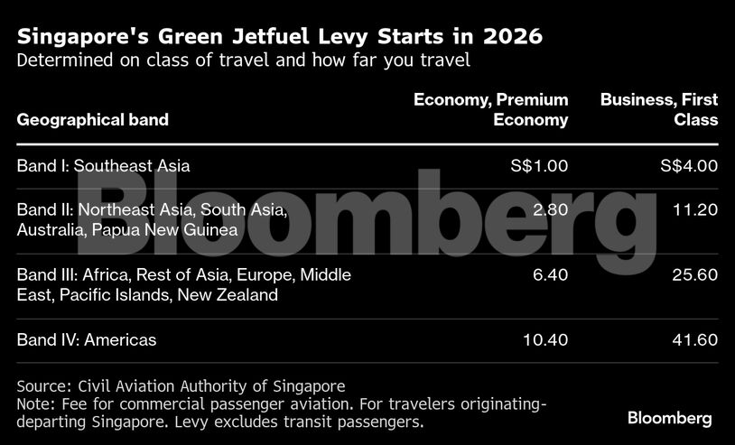 Αυτοί οι πελάτες θα πληρώνουν 1 δολάριο Σιγκαπούρης επιπλέον για ταξίδια στη Νοτιοανατολική Ασία και 10,40 δολ. Σιγκαπούρης για πτήσεις προς την Αμερική, ανακοίνωσε η Αρχή Πολιτικής Αεροπορίας της Σιγκαπούρης. Οι επιβάτες της business και της πρώτης θέσης θα πληρώνουν τέσσερις φορές περισσότερο, πρόσθεσε.