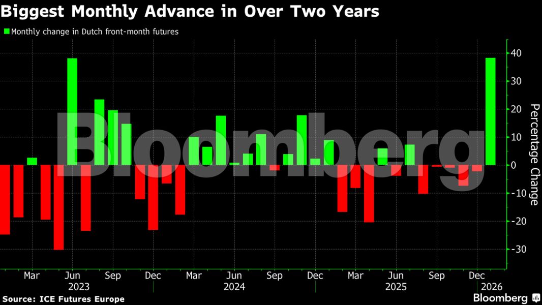 Τα συμβόλαια μελλοντικής εκπλήρωσης αναφοράς κινήθηκαν ανοδικά την Παρασκευή, με τη μηνιαία άνοδο να προσεγγίζει το 38%. Πρόκειται για τη μεγαλύτερη ενίσχυση από το καλοκαίρι του 2023 και ενδέχεται να αποτελέσει τη μεγαλύτερη μηνιαία άνοδο από την ενεργειακή κρίση πριν από τέσσερα χρόνια, εφόσον διατηρηθεί η τρέχουσα δυναμική.
