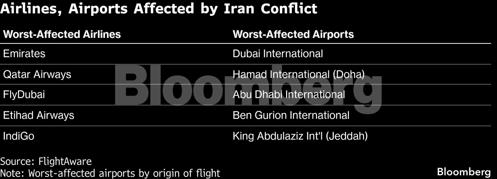 Τα αεροδρόμια που δέχθηκαν το ισχυρότερο πλήγμα ήταν το Διεθνές Αεροδρόμιο του Ντουμπάι και το Διεθνές Αεροδρόμιο Χαμάντ στη Ντόχα, τα οποία ανέστειλαν πλήρως τη λειτουργία τους, σύμφωνα με τη FlightAware. Το μεγαλύτερο αεροδρόμιο του Ντουμπάι, που αποτελεί και τη βάση της Emirates, κατέγραψε περισσότερες από 600 ακυρώσεις αναχωρήσεων.