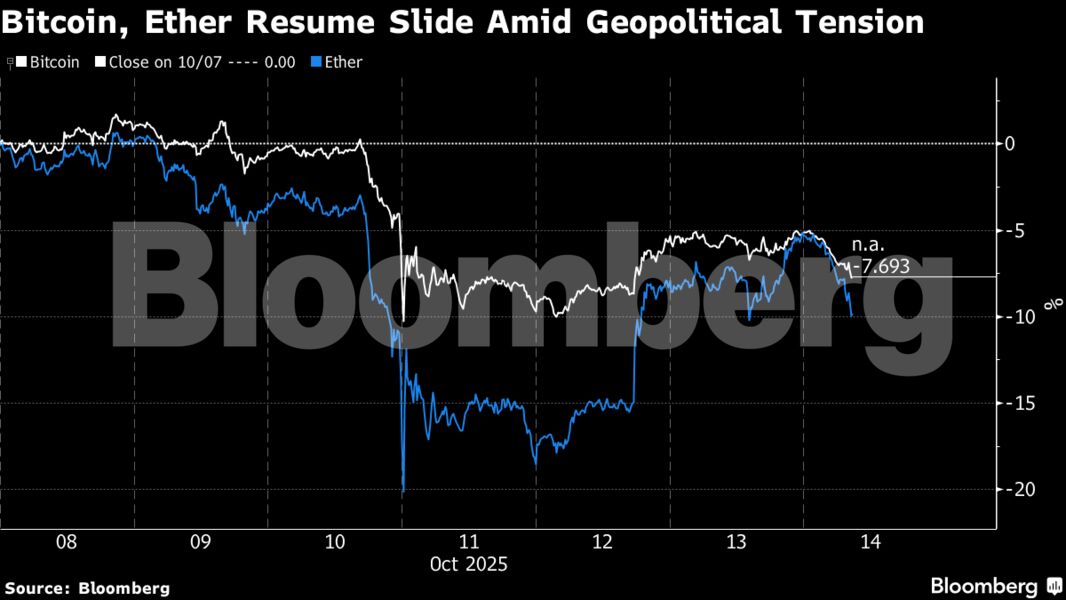 Το Bitcoin, το μεγαλύτερο κρυπτονόμισμα υποχώρησε κατά 2,9% φτάνοντας τα περίπου 112.500 δολάρια την Τρίτη, ενώ το Ether κατέγραψε πτώση άνω του 5% και έπεσε στα 4.000 δολάρια, σύμφωνα με τα στοιχεία που συγκέντρωσε το Bloomberg.