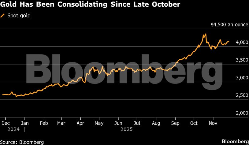 Ο χρυσός σταθεροποιήθηκε πάνω από το όριο των 4.000 δολαρίων ανά ουγγιά, μετά την υποχώρηση από το υψηλό του περασμένου μήνα πάνω από τα 4.380 δολάρια ανά ουγγιά. Το μέταλλο — που εξακολουθεί να βρίσκεται σε τροχιά για την καλύτερη ετήσια απόδοση από το 1979 — έχει αυξηθεί περισσότερο από 55% φέτος, ενισχυμένο από τις αγορές των κεντρικών τραπεζών και τις ισχυρές λιανικές πωλήσεις, με φόντο το λεγόμενο «debassement trade», όπου οι επενδυτές αποφεύγουν το δημόσιο χρέος και τα νομίσματα.