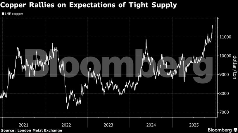 Η άνοδος επιταχύνθηκε τις τελευταίες εβδομάδες λόγω των ανησυχιών για μαζική εξαγωγή του μετάλλου στις ΗΠΑ εν αναμονή των εισαγωγικών δασμών του επόμενου έτους, με αποτέλεσμα τη μείωση των αποθεμάτων και την αύξηση των πριμ των μετάλλων σε άλλες σημαντικές περιοχές. Η παγκόσμια προσφορά εξευγενισμένου χαλκού ενδέχεται να παρουσιάσει έλλειμμα 450.000 τόνων το 2026, εν μέρει λόγω της συσσώρευσης αποθεμάτων στην Αμερική, σύμφωνα με σημείωμα αναλυτών της κινεζικής χρηματιστηριακής εταιρείας Citic Securities Co.