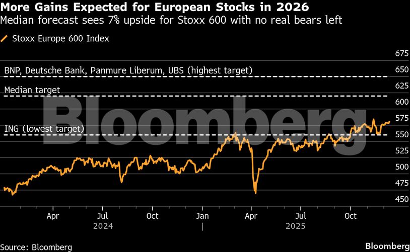 Για πρώτη φορά μέσα σε οκτώ χρόνια, οι αναλυτές της αγοράς κάνουν μια τολμηρή πρόβλεψη για την Ευρώπη: κανένας από τους στρατηγικούς αναλυτές που συμμετείχαν στην έρευνα του Bloomberg δεν προβλέπει σημαντική πτώση της χρηματιστηριακής αγοράς το 2026.