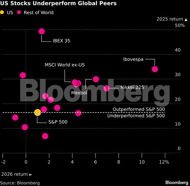 Για χρόνια, μια τέτοια κίνηση θα ήταν χαμένη υπόθεση, καθώς οι αμερικανικές μετοχές υπεραπέδιδαν άνετα έναντι των αντίστοιχων ανεπτυγμένων αγορών. Αυτό όμως άλλαξε μετά την ορκωμοσία του Τραμπ, καθώς το δολάριο αποδυναμώθηκε και οι ευρωπαϊκές κυβερνήσεις αύξησαν τις δαπάνες τους. Πέρυσι, ο δείκτης Stoxx 600 ενισχύθηκε κατά 32% σε όρους δολαρίου, ο ιαπωνικός Topix κατέγραψε άνοδο 23% και ο κορεατικός Kospi εκτοξεύθηκε κατά 80% — την ώρα που ο αμερικανικός δείκτης αναφοράς σημείωσε άνοδο 16%. Ο καναδικός S&P/TSX Composite κέρδισε 28%, ξεπερνώντας τον S&P 500 με τη μεγαλύτερη διαφορά των τελευταίων 20 ετών — και αυτό πριν από την προσαρμογή για τη συναλλαγματική επίδραση.