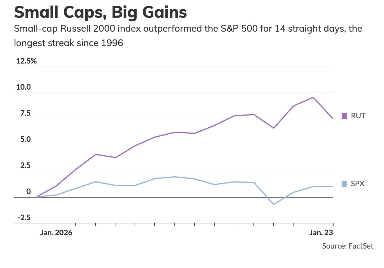 Η τάση αυτή έρχεται να συνεχίσει μια στροφή που ξεκίνησε στα τέλη του 2025, όταν κυκλικές και value μετοχές άρχισαν να κερδίζουν έδαφος έπειτα από χρόνια υστέρησης έναντι των μεγάλων τεχνολογικών τίτλων. Από την αρχή του έτους, ο Russell 2000 έχει ήδη καταγράψει επτά ιστορικά υψηλά κλεισίματα.