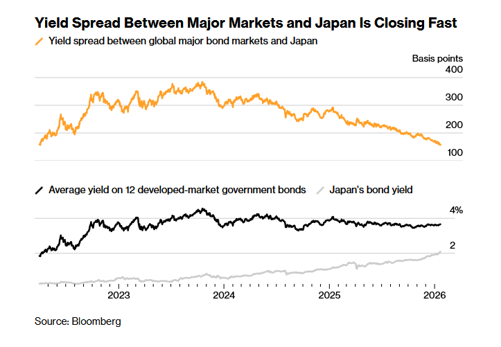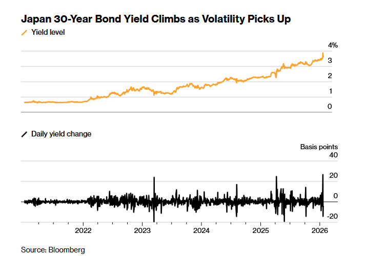 To sell-off της περασμένης εβδομάδας, συνοδευόμενο από δραματικές διακυμάνσεις του γιεν, κατέστησε σαφές ότι εκείνες οι μέρες έχουν τελειώσει. Ο πληθωρισμός, που παρέμενε αδρανής για πολύ καιρό στην Ιαπωνία, έχει εδραιωθεί και, επιπλέον, η πρωθυπουργός Σανάε Τακαΐτσι προωθεί σχέδια δημοσιονομικής τόνωσης που θα αυξήσουν το ήδη δυσάρεστα μεγάλο δημόσιο χρέος. Ως αποτέλεσμα, οι επενδυτές έχουν ανεβάσει με φρενήρη ρυθμό τις αποδόσεις των ομολόγων σε επίπεδα που κάποτε ήταν αδιανόητα — πάνω από 4% για τα μακροπρόθεσμα ιαπωνικά κρατικά ομόλογα. Αυτό ασκεί ανοδική πίεση στα επιτόκια από τις ΗΠΑ έως τη Βρετανία και τη Γερμανία.