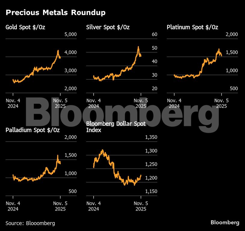 Ο χρυσός αυξάνεται αυτή την ώρα κατά 0,40% στα 3.976,40  δολάρια ανά ουγγιά. Ο δείκτης Bloomberg Dollar Spot Index παρέμεινε σταθερός μετά το κλείσιμο στο υψηλότερο επίπεδο από τα μέσα Μαΐου. Ανοδικά κατά σχεδόν 1% κινήθηκε το ασήμι, ενώ το παλλάδιο σημείωσε μικρή άνοδο.