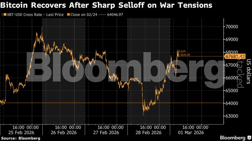 Το Bitcoin και άλλα κρυπτονομίσματα κατέγραψαν ισχυρή ανάκαμψη στις πρώτες συναλλαγές της Κυριακής στην Ασία, αφού το Ιράν επιβεβαίωσε ότι ο ανώτατος ηγέτης της χώρας σκοτώθηκε κατά τη διάρκεια στρατιωτικής επιχείρησης των ΗΠΑ και του Ισραήλ.