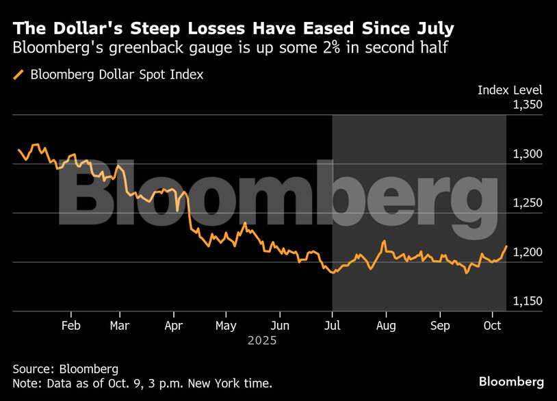 Ο δείκτης δολαρίου του Bloomberg έχει ενισχυθεί κατά περίπου 2% από τα μέσα του έτους, μετά από τη μεγαλύτερη πτώση α’ εξαμήνου εδώ και δεκαετίες, ενώ μόνο αυτή την εβδομάδα σημείωσε άνοδο 1,2%, στην καλύτερη επίδοση των τελευταίων 11 μηνών.