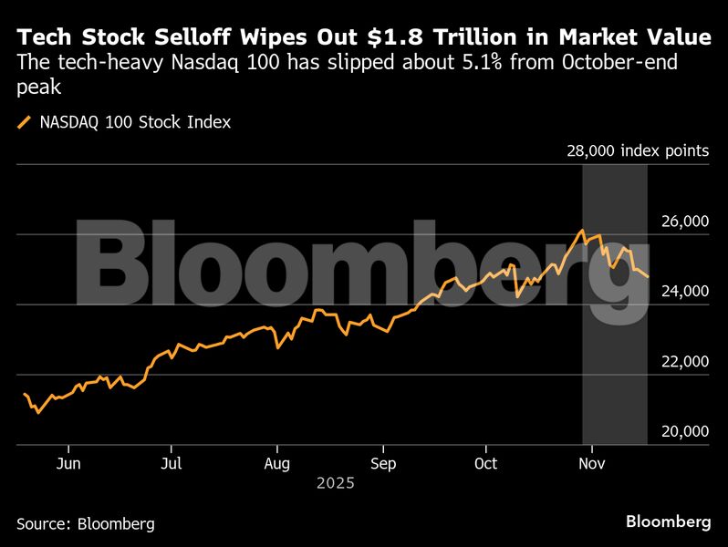 Η υποβάθμιση ήρθε σε μια περίοδο αυξημένης μεταβλητότητας. Ο Nasdaq 100 έχει διαγράψει σχεδόν 1,8 τρισ. δολάρια από την κορύφωσή του στα τέλη Οκτωβρίου, σημειώνοντας πτώση περίπου 5,1%. Οι επενδυτές εγκαταλείπουν τις μετοχές τεχνητής νοημοσύνης, ανησυχώντας ότι οι αποτιμήσεις τους έχουν ξεφύγει από τα ρεαλιστικά επίπεδα.