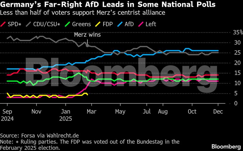 Η κυβέρνηση δυσκολεύεται να πείσει τους ψηφοφόρους ότι μπορεί να εκπληρώσει τις δεσμεύσεις της: ενίσχυση της ανάπτυξης, ασφάλειας και άμυνας, αλλά και αποκατάσταση των υποδομών. Παρά τα ειδικά ταμεία δισεκατομμυρίων για στρατιωτικές και υποδομικές επενδύσεις, οι επιπτώσεις καθυστερούν.