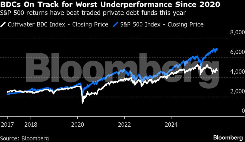 Η δημόσια διαπραγµατευόµενη αγορά ιδιωτικού δανεισµού φαίνεται να κλείνει το 2025 µε τη χειρότερη επίδοσή της από το 2020, καθώς οι Business Development Companies (BDCs) υστερούν αισθητά έναντι της Wall Street και βρίσκονται αντιµέτωπες µε αυξανόµενες αµφιβολίες για τον ρόλο τους στη βιοµηχανία του private credit, ύψους 1,7 τρισ. δολαρίων.