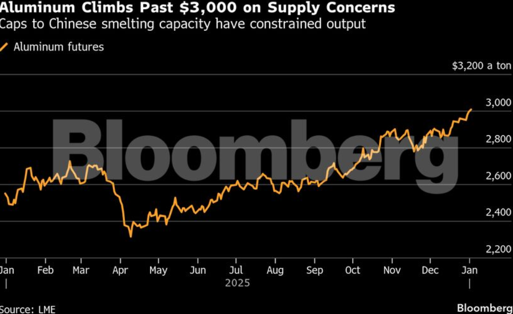 Το αλουμίνιο ξεπέρασε το όριο των 3.000 δολαρίων ανά τόνο για πρώτη φορά μετά από περισσότερο από τρία χρόνια, καθώς οι εκτιμήσεις για περιορισμένη προσφορά και τα στοιχήματα μακροπρόθεσμης ζήτησης ενισχύουν τις τιμές. Με τον τρόπο αυτόν, το μέταλλο ακολουθεί την ανοδική κίνηση και άλλων βιομηχανικών μετάλλων που κατέγραψαν πρόσφατα σημαντικά ανοδικά ορόσημα.