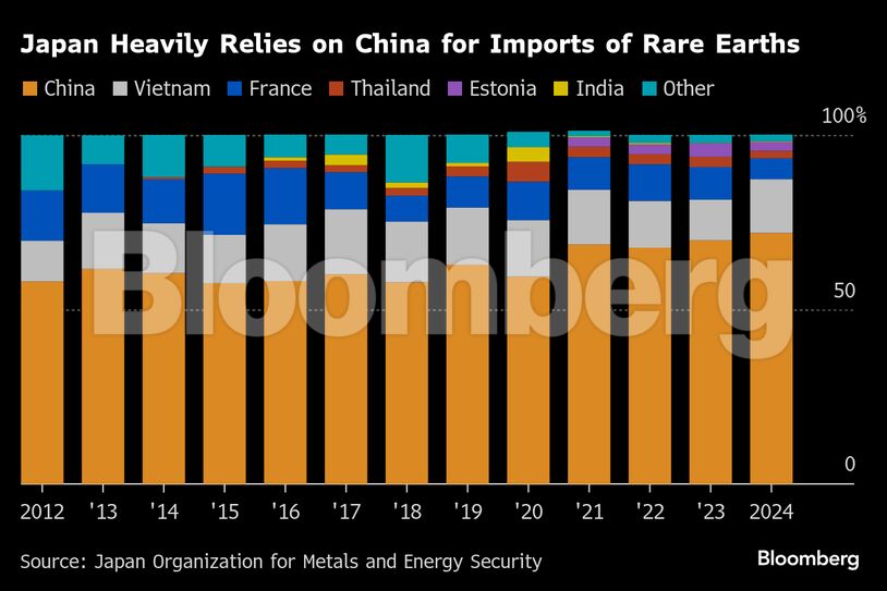 Η Ιαπωνία βασίζεται στην Κίνα για περίπου το 70% των εισαγωγών σπάνιων γαιών (στοιχεία 2024), σύμφωνα με τον Japan Organization for Metals and Energy Security. Το προηγούμενο του 2010, όταν η Κίνα περιόρισε τις εξαγωγές λόγω εδαφικής διαμάχης, παραμένει νωπό στη μνήμη της ιαπωνικής βιομηχανίας.