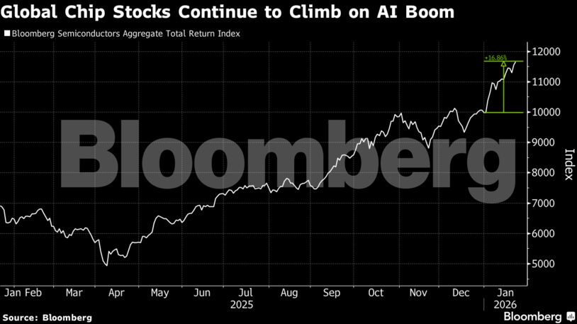 Οι παγκόσμιες μετοχές των ημιαγωγών κινήθηκαν ανοδικά, καθώς δηλώσεις του διευθύνοντος συμβούλου της Nvidia, Τζένσεν Χουάνγκ, στο Νταβός ενίσχυσαν τον ενθουσιασμό των επενδυτών γύρω από το trade της τεχνητής νοημοσύνης.