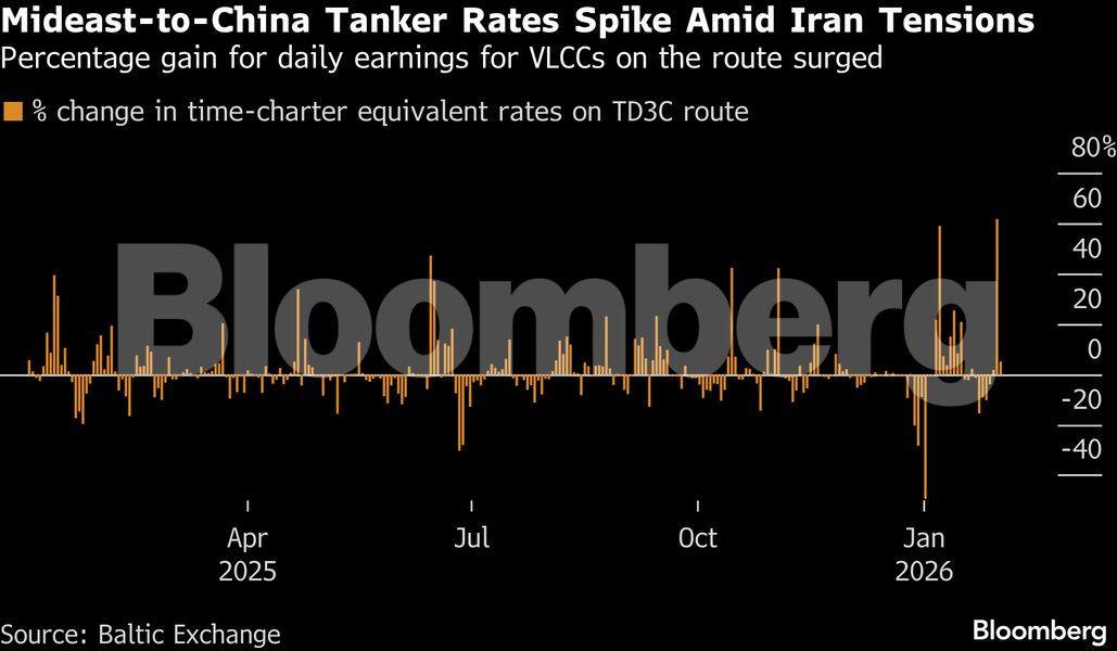 Τα δεξαμενόπλοια που μεταφέρουν αργό πετρέλαιο από τη Μέση Ανατολή προς την Κίνα χρέωσαν αυτή την εβδομάδα τα υψηλότερα ναύλα των τελευταίων δύο μηνών, καθώς οι ανησυχίες για την ένταση στο Ιράν, σε συνδυασμό με την περιορισμένη διαθεσιμότητα πλοίων, ώθησαν προς τα πάνω τις τιμές.