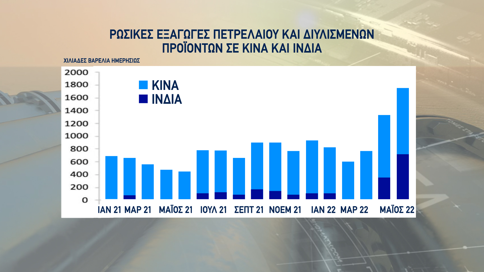 Κι αν η Κίνα αγόραζε παραδοσιακά από τη Ρωσία, η Ινδία έχει εξαπλασιάσει τις αγορές της τον Μάϊο σε σύγκριση με τον Ιανουάριο.