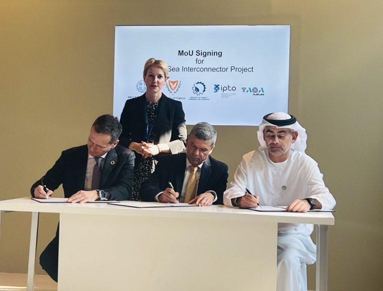 Το Υπουργείο Ενέργειας, Εμπορίου και Βιομηχανίας (ΥΕΕΒ), ο Ανεξάρτητος Διαχειριστής Μεταφοράς Ηλεκτρικής Ενέργειας (ΑΔΜΗΕ) της Ελλάδας και η Εθνική Εταιρεία Ενέργειας του Abu Dhabi PJSC (TAQA), υπέγραψαν τη Δευτέρα Μνημόνιο Συναντίληψης για συνεργασία στην ηλεκτρική διασύνδεση Κύπρου, Ελλάδας και Ισραήλ.