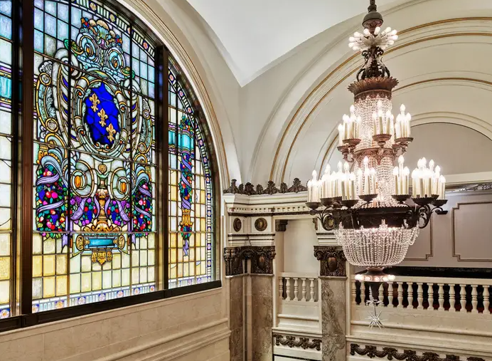Ο θρίαμβος του σχεδιασμού είναι ορατός από την είσοδο, με ένα λόμπι που λέγεται ότι είναι εμπνευσμένο από την Όπερα του Παρισιού του Charles Garnier, με μια κολοσσιαία τοξωτή σκάλα.