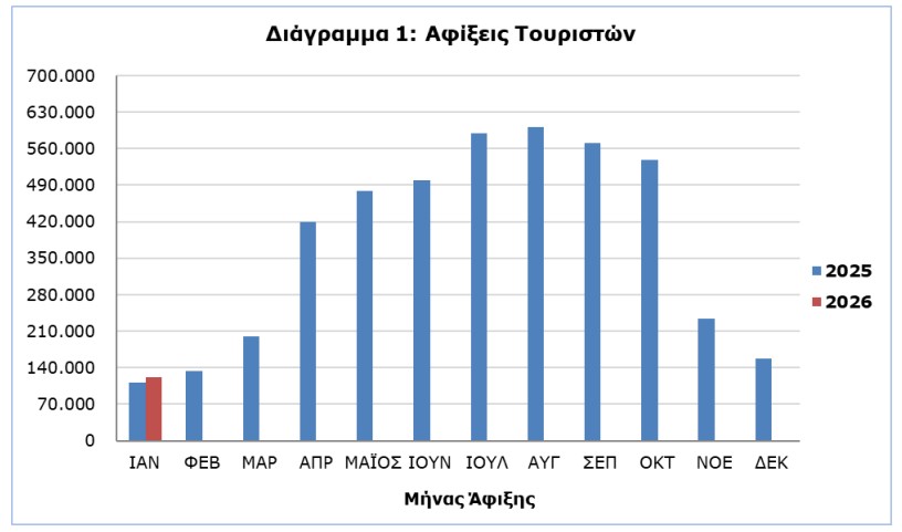 Με το δεξί ξεκίνησε το 2026 για τουρισμό - Στις 121.625 οι αφίξεις, αυξημένες κατά 8,5%