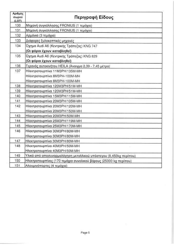 Οι αγοραστές θα πρέπει να σημειώσουν ότι το 50% της αξίας του ΛΟΤ, θα πληρώνεται σε μετρητά, αμέσως μετά την κατακύρωσή του και το υπόλοιπο μέρος (50%), μέσα στις επόμενες 5 εργάσιμες μέρες.