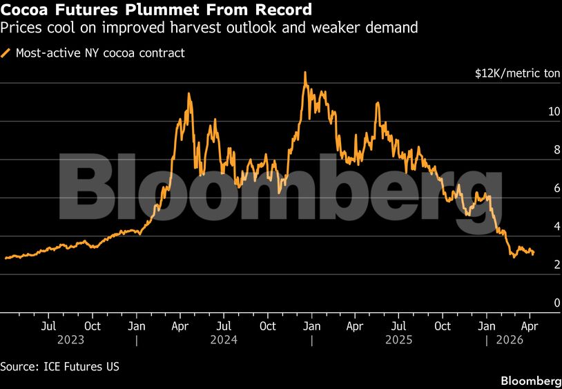Πολλές εταιρείες εξακολουθούν να διαχειρίζονται αποθέματα που αγοράστηκαν σε υψηλές τιμές ή να εφαρμόζουν τροποποιημένες συνταγές με μειωμένη περιεκτικότητα σε κακάο, μετά το ιστορικό ράλι του 2024 που αναδιαμόρφωσε τον κλάδο της σοκολάτας. Η μείωση της ζήτησης που ακολούθησε, σε συνδυασμό με ικανοποιητικές σοδειές, ενίσχυσε τις προσδοκίες για πλεόνασμα μεγαλύτερο του αναμενόμενου, οδηγώντας το βασικό συμβόλαιο κακάο της Νέας Υόρκης σε πτώση περίπου 75% από τα ιστορικά υψηλά του.