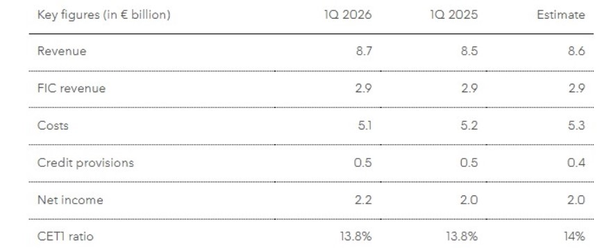 Ειδικότερα, τα συνολικά έσοδα ανήλθαν σε 8,7 δισ. ευρώ το πρώτο τρίμηνο του έτους, έναντι 8,5 δισ. το αντίστοιχο τρίμηνο πέρυσι. Οι αναλυτές προέβλεπαν έσοδα 8,6 δισ. το α' τρίμηνο του 2026.