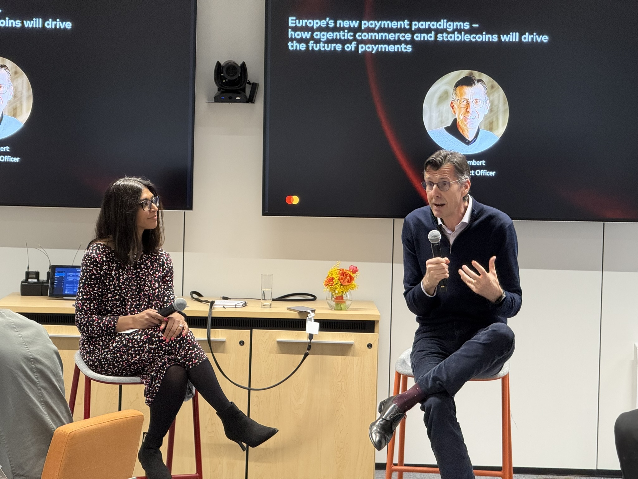 Ο Jorn Lambert, Chief Product Officer της Mastercard, μετέφερε τη συζήτηση στο μέλλον του ίδιου του εμπορίου. Με μια ιστορική αναλογία που χρησιμοποίησε για να δώσει προοπτική, περιέγραψε διαδοχικά τα paradigm shifts των τελευταίων δεκαετιών — το PC, το internet, το mobile internet και το cloud — για να υποστηρίξει ότι η τρέχουσα δεκαετία φέρνει δύο νέες καταλυτικές αλλαγές το agentic commerce και τις blockchain-based πληρωμές. Δεν τον ενδιέφερε τόσο να περιγράψει ένα αφηρημένο hype, όσο να δείξει πώς αλλάζει πρακτικά η εμπειρία του καταναλωτή.