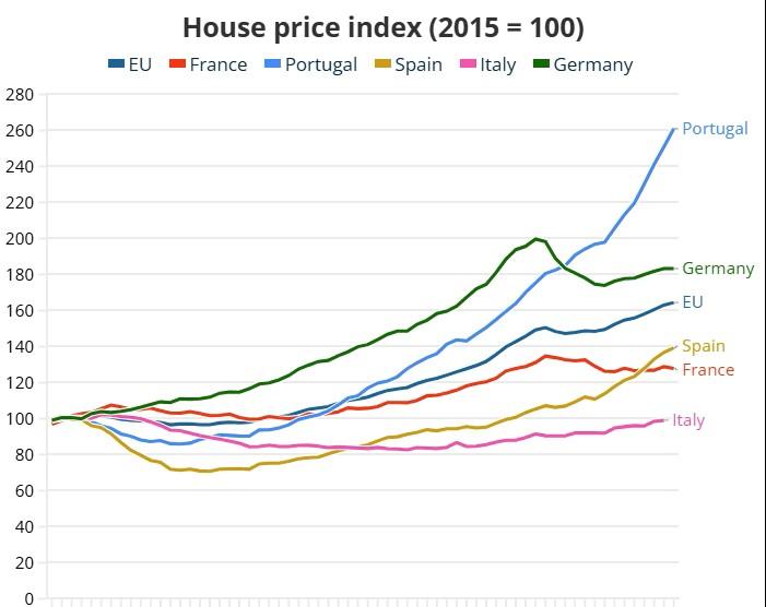 «Στην Πορτογαλία, η αύξηση των τιμών τροφοδοτείται από την πολύ περιορισμένη προσφορά, κυρίως στη Λισαβόνα, το Πόρτο και τις γύρω περιοχές, αλλά και από στοχευμένα μέτρα στήριξης από την κυβέρνηση», είπε.
