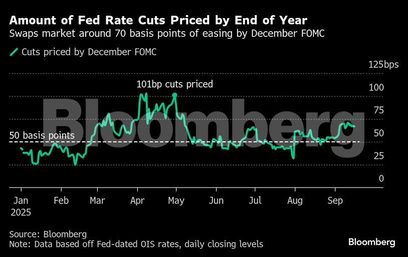 Οι επενδυτές αναμένεται να επωφεληθούν από δύο μειώσεις κατά 0,5% ή τρεις μειώσεις κατά 0,25% κατά τη διάρκεια των ανακοινώσεων του Σεπτεμβρίου, Οκτωβρίου και Δεκεμβρίου. Οι συναλλαγές αντικατοπτρίζουν μια πιο επιεική πορεία από αυτή που παρατηρείται επί του παρόντος στα swaps, τα οποία τιμολογούν περίπου 70 μονάδες βάσης χαλάρωσης μέχρι τη συνεδρίαση του Δεκεμβρίου.