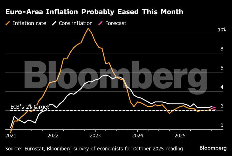 Εξίσου σημαντικά θα είναι τα στοιχεία για τον πληθωρισμό του Οκτωβρίου, που θα ανακοινωθούν την Παρασκευή και αναμένεται να δείξουν μικρή υποχώρηση στο 2,1% από 2,2%. Η ΕΚΤ θα δημοσιεύσει επίσης την Έρευνα Τραπεζικού Δανεισμού, που θα δείξει πώς αποτυπώνεται η νομισματική πολιτική στην πραγματική οικονομία.