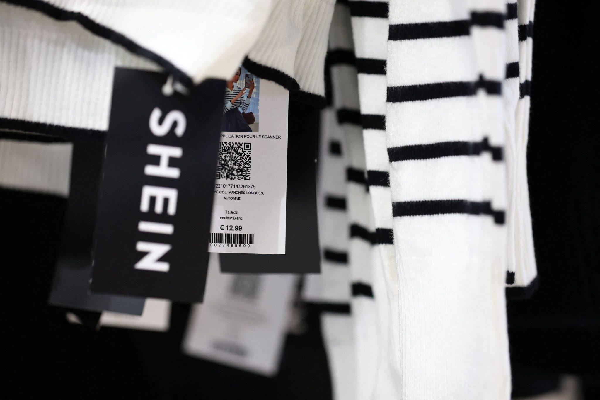 Το λογότυπο της Shein εμφανίζεται σε μια ετικέτα κοντά στην τιμή ενός πουλόβερ που πωλείται στον πρώτο φυσικό χώρο του κινεζικού διαδικτυακού καταστήματος γρήγορης μόδας, την ημέρα των εγκαινίων του στο πολυκατάστημα Le BHV Marais, στο Bazar de l’Hotel de Ville, στο Παρίσι – REUTERS/Sarah Meyssonnier