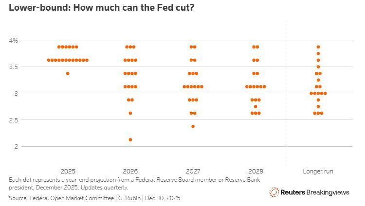 Άλλοι προσδοκούν μια πιο επιθετική FOMC, υπό την πίεση του Τραμπ και του υπουργού Οικονομικών Σκοτ Μπέσεντ, με ορισμένους να προβλέπουν πτώση των επιτοκίων κάτω από το 3% πριν από την εξέγερση των αγορών ομολόγων. Ωστόσο, με τρεις διαφωνίες αυτόν το μήνα στην επιτροπή, τις περισσότερες από το 2019, και την ίδια την 12μελή ομάδα να προτείνει μόνο μία μείωση το επόμενο έτος, θα είναι δύσκολο για τον Χάσετ ή οποιονδήποτε άλλο να πιέσει την Fed.