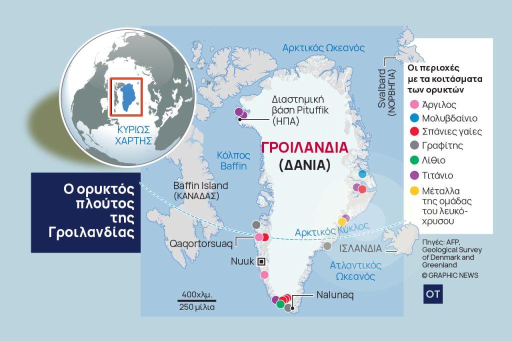 Εκτός από τη στρατηγική γεωπολιτική της θέση, η Γροιλανδία είναι γνωστή για την αφθονία των ανεκμετάλλευτων πρώτων υλών της, από αποθέματα πετρελαίου και φυσικού αερίου έως σημαντικά κοιτάσματα ορυκτών και έναν θησαυρό σπάνιων γαιών.