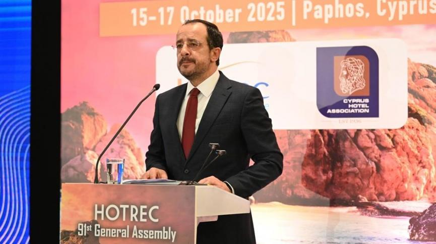 Η Κυπριακή Προεδρία του Συμβουλίου της ΕΕ θα οικοδομήσει επί της ευρωπαϊκής ατζέντας για τον Τουρισμό 2030 και θα διερευνήσει την προοπτική για νέους ορίζοντες στον τομέα αυτό, είπε σήμερα ο Πρόεδρος της Δημοκρατίας Νίκος Χριστοδουλίδης, ο οποίος χαιρέτισε τη 91η Γενική Συνέλευση του Συνδέσμου HOTREC (Ξενοδοχείων, Εστιατορίων και Καφέ) της Ευρώπης, που πραγματοποιείται στην Πάφο.