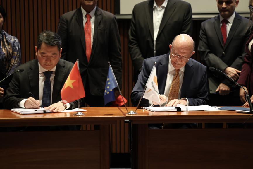 Τη συμφωνία υπέγραψαν ο Υπουργός Οικονομικών, Μάκης Κεραυνός, και ο Υφυπουργός Οικονομικών του Βιετνάμ, Cao Anh Tuan.