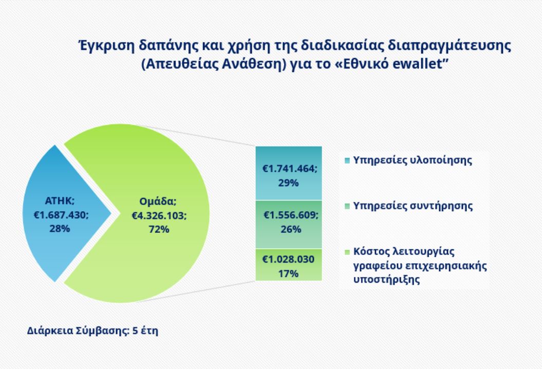 Με μία έκθεση - χείμαρρο που συνοδεύεται με γραφικά και πολλές λεπτομέρειες, η Ελεγκτική Υπηρεσία αποκαλύπτει πως η ετοιμασία του εθνικού ψηφιακού πορτοφολιού (eWallet) αποτέλεσε πεδίο για παρατυπίες, αυθαίρετες αποφάσεις και σύγκρουσης συμφέροντος. Εξέφρασε μάλιστα την πρόθεσή της να διαβιβάσει τα ευρήματα του ελέγχου της στην Ανεξάρτητη Αρχή κατά της Διαφθοράς για εξέταση του ενδεχόμενου κατάχρησης εξουσίας από διάφορα εμπλεκόμενα άτομα.