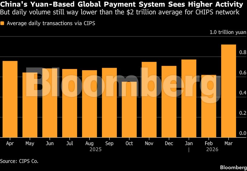 Παράλληλα, το σύστημα πληρωμών CIPS παραμένει μικρό σε σύγκριση με το αμερικανικό CHIPS, το οποίο διαχειρίζεται ημερήσιες συναλλαγές περίπου 2 τρισ. δολαρίων.
