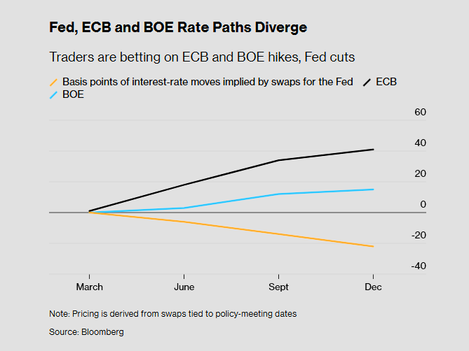 Η κατάσταση είναι διαφορετική στην Ευρώπη, όπου παρά τους κινδύνους για την ανάπτυξη, το επίκεντρο βρίσκεται σταθερά στον πληθωρισμό και οι προσδοκίες για περαιτέρω χαλάρωση έχουν σχεδόν εξαφανιστεί.