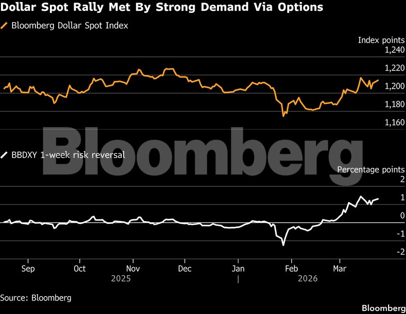 Ενδεικτικό είναι και το σήμα από τα λεγόμενα risk reversals, που αποτυπώνουν το κόστος αγοράς έναντι πώλησης ενός νομίσματος στην αγορά options. Το premium υπέρ της ανόδου του δολαρίου διευρύνθηκε τη Δευτέρα, ενώ αυξημένη είναι και η ζήτηση για στρατηγικές προστασίας έναντι απότομων κινήσεων.