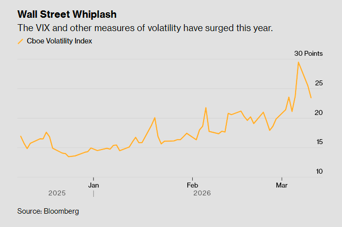 Αυτό προκαλεί την πιο έντονη αστάθεια των αγορών από τον Απρίλιο του περασμένου έτους, όταν οι τιμές επηρεάστηκαν από την ανακοίνωση των δασμών του Τραμπ. Ο δείκτης κινδύνου αγοράς της Bank of America, ο οποίος παρακολουθεί τις υπονοούμενες διακυμάνσεις σε μετοχές, επιτόκια, νομίσματα και εμπορεύματα, έχει αυξηθεί σε επίπεδα που υποδηλώνουν μεγαλύτερη πίεση από το κανονικό. Ο δείκτης μεταβλητότητας Cboe, γνωστός ως VIX, ξεπέρασε για λίγο τις 35 μονάδες πριν λίγες ημέρες, περισσότερο από το διπλάσιο του επιπέδου με το οποίο ξεκίνησε το έτος.